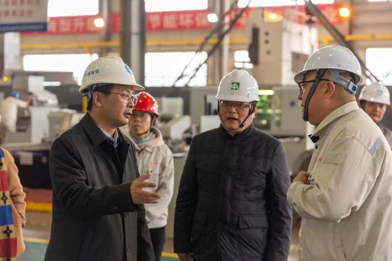 11月28日下午,南通市國資委陸雪松主任、產控集團總經理陸強新一行重點檢查了機加工車間、輔機車間和集中供氣站。金通靈科技集團股份有限公司總經理季偉、常務副總經理季維東等陪同檢查。